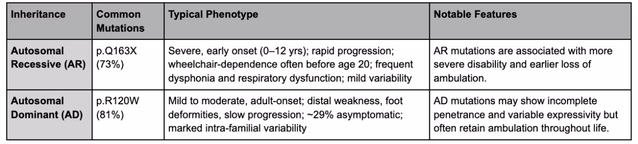 Generally, autosomal recessive mutations (CMT4A) cause more severe disease with an earlier onset, often beginning in childhood and progressing rapidly, sometimes leading to wheelchair dependency and respiratory complications.