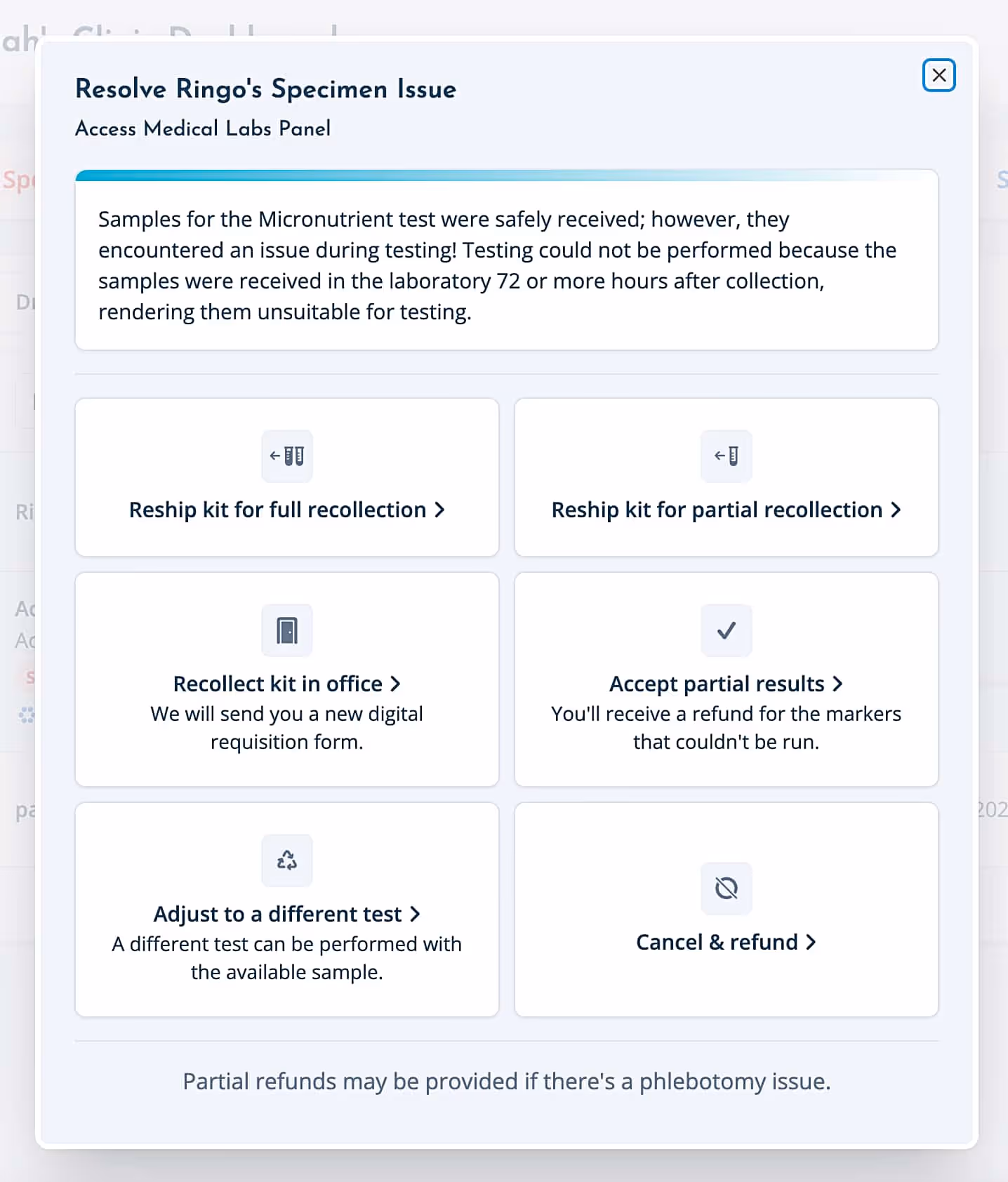 Practitioners can now see and handle specimen issues right from the Dashboard.